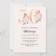 A modern, stylish and glamourous invitation for a 50th birthday party. A peach coloured background. Decorated with foral numbers in faux gold and pink. The name is written with a modern hand lettered style script. Personalize and add your party details.
