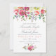 Pink peach floral watercolor wedding invitations with hues of violet and plum featuring peonies, roses, eucalyptus and white hydrangeas.