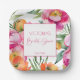 Bold pink magenta peach orange peonies elegant bridal shower template paper plates personalized tableware decor, vibrant bold colours modern casual typography