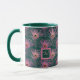 Pink Peacock Feathers and Monogram on Deep Green Mug
