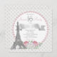 Paris sweet 16 party invitations with beautiful pink pearls and Eiffel tower on a pretty floral and grey damask background with elegant silver diamond numbers. You can easily customize this beautiful shabby chic Paris sweet sixteen birthday party invitation for your event by simply adding your details in the font style of your choice.