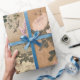 A collage of Asian paintings, lacquered paintings, antique wallpapers, and textiles make a beautiful gift extraordinary. Depending on how you place the design you can wrap a few gifts with one paper, and have many different looks and embellishments. All-occasion gift wrap.