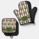 This set has green and white stripes with a pattern of pink peonies. You can personalize the oven mitt and pot holder.