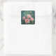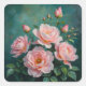 Pink Peonies Artwork on Emerald Green Square Sticker