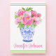 Pink Peonies Chinoiserie Vase Border Personalized Thank You Card