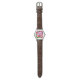I like the illustrative watch with the lady on it. It is a great reminder that I am blessed and it has a very sturdy leather band. The colors are true and vibrant. Love the color of the Leather also. Very nice.