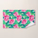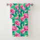 Towel set in a soft watercolor pattern of pink peonies and green leaves, on a white background