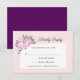 This stylish wedding RSVP card features watercolor painted pink peonies accented with green leaves and dark purple budding flowers. The background is white and bordered with light pink. The backside is dark purple.