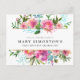 Such pretty pink peonies. They create an upper and lower border for the announcement of a 100th birthday party celebration. Three lines of text let you customize your greeting on the front of the birthday invitation postcard. The birthday party details are on the back. The peonies have dark pink centres and soft pink outer petals. The modern botanical design includes deep olive leaves and turquoise blue vine outlines. All text can be edited.