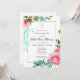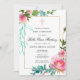 Bright pink watercolor peony with turquoise blue open foliage. Modern and elegant.