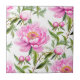 Ceramic tile in a pattern of soft pink peonies with sage green leaves, scattered against a white background