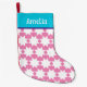 A Splash of Pink Perfection: Move over traditional red and green! Our pink Christmas stocking is a delightful twist on tradition. It's a breath of fresh winter air, bringing a touch of modern elegance to your holiday décor. The colour pink symbolizes warmth, love, and joy, making it the perfect hue for a season filled with giving and togetherness. Add a custom name to make this stocking unique.