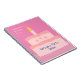 Personalized bithday party notebook with a festive brithday cake and candle, with a pink girly theme, stars and zig zag line pattern. Fun, festive and ready for your plans and ideas, party guest names, and any notes and ideas. The candle is a generic theme or can be for a kids 1st birthday or 1st Anniversary party. Can change to Anniversary Party Notes or any holiday or special event title. Any wording can be changed or resized to fit your changes.