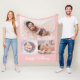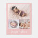 Pink Personalized Baby Girl Name & 3 Photo collage Fleece Blanket
