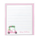 A charming unique golf cart -- pink and green -- tastefully done -- ready to run the course -- the notepad. This is a great gift for all golf lovers -- fun / attractive / unique. Personalize it with your/her name. If you have any design questions or a special request, please send a chat or an email to: charmdesignstudio@rcn.com and we'll be delighted to assist. Also comes in an unlined version.