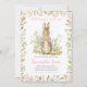 Celebrate the arrival of your little bundle of joy with this adorable Pink Peter Rabbit Baby Shower Invitation. This charming invitation showcases a sweet bunny in a classic pink jacket, surrounded by soft watercolor foliage and delicate pink floral accents. This invite is sure to delight your guests and set the tone for a joyous celebration! BBS300