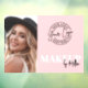 Modern Makeup Artist Window Cling. This sleek and stylish design is perfect for displaying on a salon or suite window. The top features your logo, with the word “MAKEUP” in bold white font below it. The script name appears in black at the bottom right corner reading as “by [Name]” for a clean, professional look.