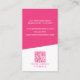 On the back, the hot pink background highlights your contact details, QR code, and social media icons while keeping everything easy to read. The mix of white typography and minimal accents creates a bright, modern feel that works well for any industry.