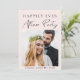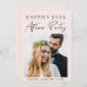Modern pink elopement or private wedding announcement and reception invitation with your wedding photo, "Happily Ever After Party" in simple typography and a chic script and your names and wedding date. On the back, customize your announcement and invitation, input the URL address of your wedding website to create a QR code for guests to scan for all the details and to RSVP online, and add your names in a signature-like script.