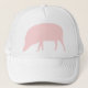 This hat features a cartoon style pink pig. It has its head down ready to gobble up whatever food it can find. The design is shown here on a white hat but it is also available on several other coloured hats.
