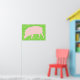 This poster features a cartoon style pink pig. It has its head down ready to gobble up whatever food it can find. The background is a mixture of different shades of green to create the impression of grass.