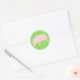 This set of round stickers features a cartoon style pink pig. It has its head down ready to gobble up whatever food it can find. The background is a mixture of different shades of green to create the impression of grass.