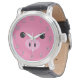 A cute light pink magenta colour baby piglet animal face with pink round nose and shiny black eyes. An original digital art design.