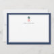 Our chic personalized stationery flat cards feature a navy blue border, a green and pink tropical pineapple illustration, and your name, monogram or choice of personalization. Cards reverse to wide navy blue and white stripes for a preppy chic look.