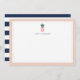Our chic personalized stationery flat cards feature a pastel blush pink border, a green and pink tropical pineapple illustration, and your name, monogram or choice of personalization. Cards reverse to wide navy blue and white stripes for a preppy chic look.