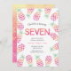 Pink pineapple tropical 7th birthday Invitation