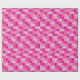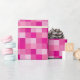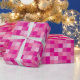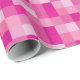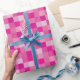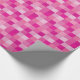 This wrapping paper features squares in different shades of pink in a pixelated pattern.