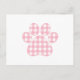Pink Plaid Paw Print Holiday Postcard