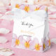 This design features pink frangipani / plumeria flowers. A tropical design elegantly framed with pink frangipani flowers and centred text. The bride's and groom's names are emphasized with an orange colour chosen from the centre of the plumeria flower. These popular tropical Hawaiian flowers are ideal for an elegant destination beach wedding. Tropical wedding favour box design with modern elements. Matching wedding invitations and other stationery items are also available.