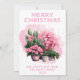 Pink Poinsettia for Christmas card in blue for a festive Holiday greeting to family and friends.