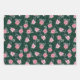 Pink Poinsettia Flowers on Dark Green Wrapping Paper Sheet