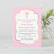 Pink Polka Dot Baptism with Cross and Gold Border Invitation