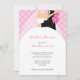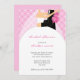 Cute bridal shower invitations, with an illustration of a bride and groom on a pink polka dot background. Get the matching postage, favour labels, and mailing labels. Contact us for custom colours to match your wedding colours - PMCustomWeddings@hotmail.com