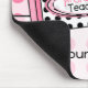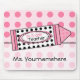 A mousepad featuring a pink background with pink polka dots. Illustration of matching pink crayon at centre. Label of crayon is white with black polka dots. Text on crayon reads "1st Grade Teacher." Personalize with your name.