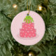 Pink Polka Dot Designer Cake Ceramic Ornament