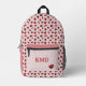 This cute kid's backpack features my hand drawn ladybugs against a pink and white polka dot backdrop. Easily personal with your monogram initials.