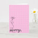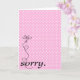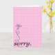 Big "sorry" in black with digital daisy on pink and white polka dot background.