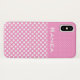 This designs features pink and white polka dots, big and small. You can customize the typography with your name or other text you choose on this girly design.