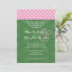 Pink Polka Dots Green and Ribbon Edge Wedding Invitation