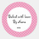 Pink Polka dot 'baked by nana' sticker. design dispose d'une jolie bordure de polka rose et blanc avec le message "cuit avec amour par nana" en noir amusant police, avec quelques baisers ajoutés à la fin! parfait pour sceller ces cookies de Nana à la famille et les amis! Vous pouvez modifier le libellé, la police et la couleur dans le menu personnaliser !