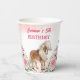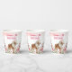 Pony birthday giddy up cowgirl cowboy party custom party paper cups. Pink background, pony with pink roses for horses, ponies, equestrian themed birthdays.