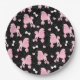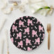 Cute Pink Poodles Pattern with Bows and Hearts on Delicate Swirl Pattern a Soft Black Background Paper Plates.
