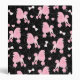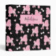 Cute Pink Poodles Pattern with Bows and Hearts on Delicate Swirl Pattern a Soft Black Background 3 Ring Binder with Custom Name and Monogram or Initials.
