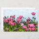 This design features a beautiful image of a field of pink poppies in bloom. The bright color of the flowers looks incredible against the sunlit sky behind.