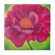 Pink Poppy Flower Closeup Acrylic Painting ceramic tile. This is an Acrylic Painting of One Big Pink Poppy Flower at the centre of vibrant green background, gradient to light green yellow, and slightly brightening toward the centre part .The colours are very vibrant and the way the gradient background fades from dark corners to lighter centre part, its shaping a bright yellowish aura around the flower itself which makes the hot pink colour stand out even more. This is a scan from my original art work at Serene Inanna Studio.com