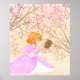 Pink Princess and squirrel poster. A cute sweet princess in pink dress with almond blossom for background.Colors prefect for children`s room.She is shiny and smiles and will make your walls more magical. For lovers of princesses and all pink and blossoms.